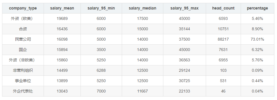由上报可知,欧美外企的工资显著高于其他企业。要努力学好英语呀!