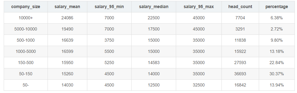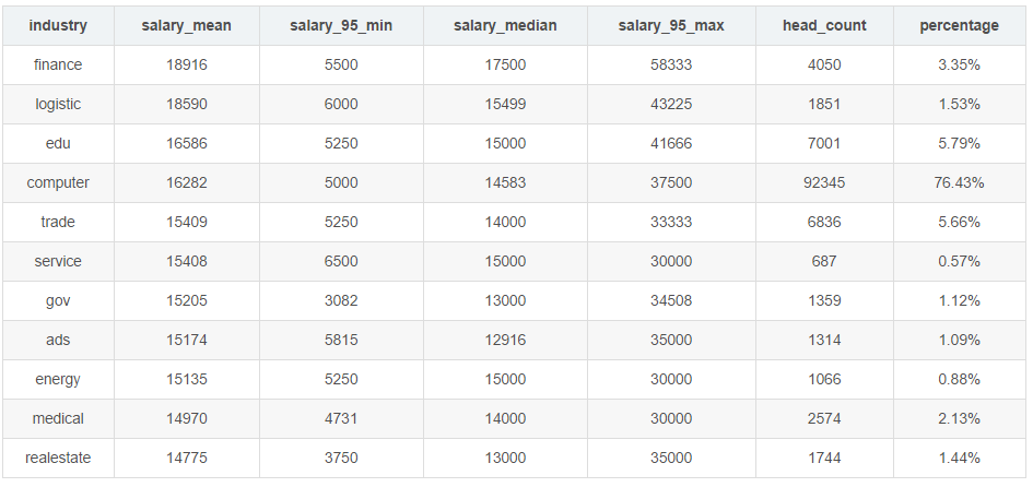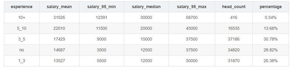 数据显示,工资会随着工作经验的增长而增长。不过,我感觉那些招十年工作经验的,基本上都是架构师等职位。如果你的工作经验是一年的工作经验重复十次,应该拿不到那么高的工资。这个以后我还会仔细分析。