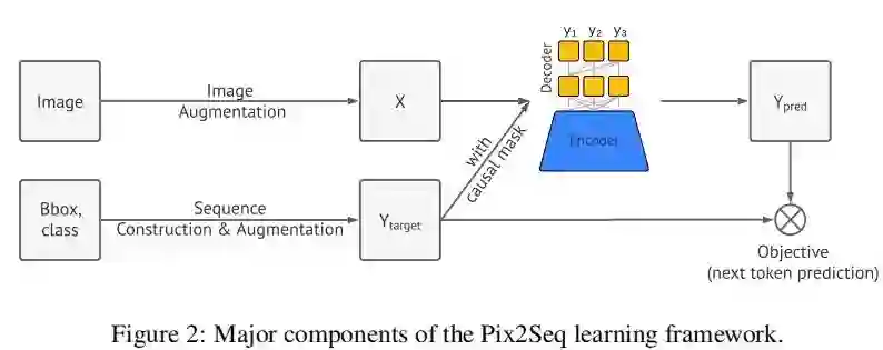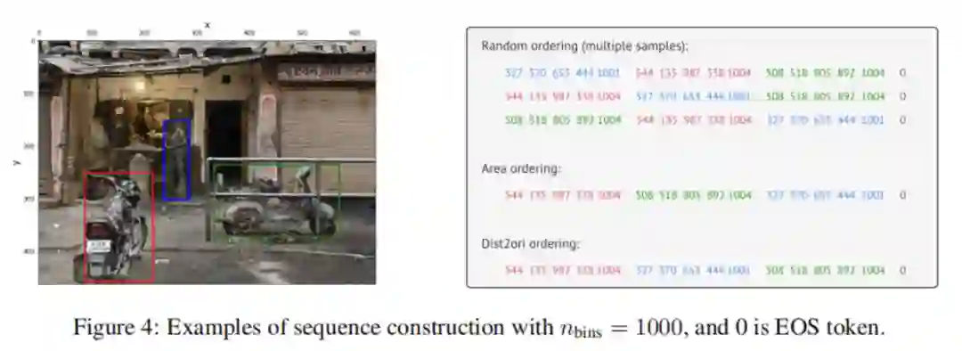 序列构建与增广 :由于图像中的目标标注通常为边框与类别集合,因此我们将其转换为离散token序列;