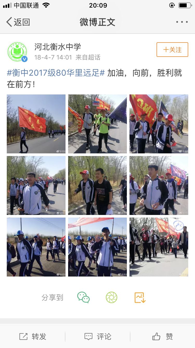 在衡水中学的官方微博微信账号,以及它传递给媒体的信息里,可以看到它都在向外界传达其向好的一面,诸如校园环境的改善、学生综合素质的提高、推行了校长陪餐制等等。