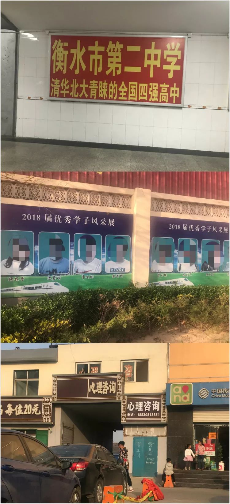 “有趣的是,衡中校本部直线距离一公里外就是一家三级甲等的心理康复医院,而在学校周围,也能偶尔撞到一两家心理咨询诊所。”