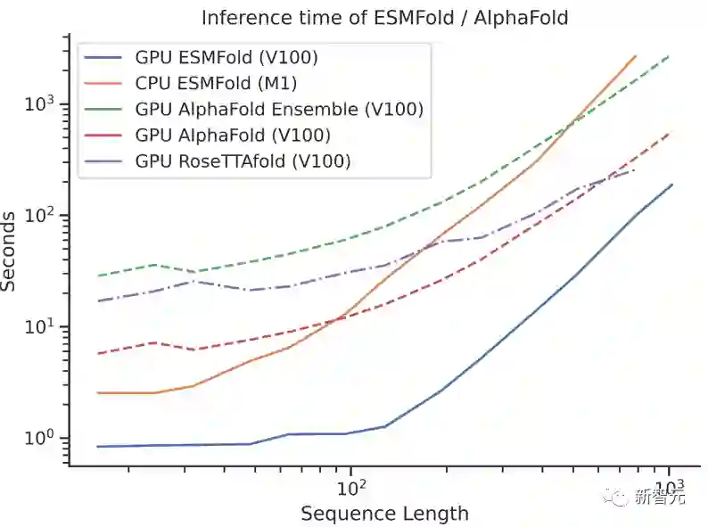 在当初ESMFold发布时,已经和AlphaFold2、RoseTTAFold等主流蛋白质模型不相上下。但ESMFold预测速度要比AlphaFold2快一个数量级!