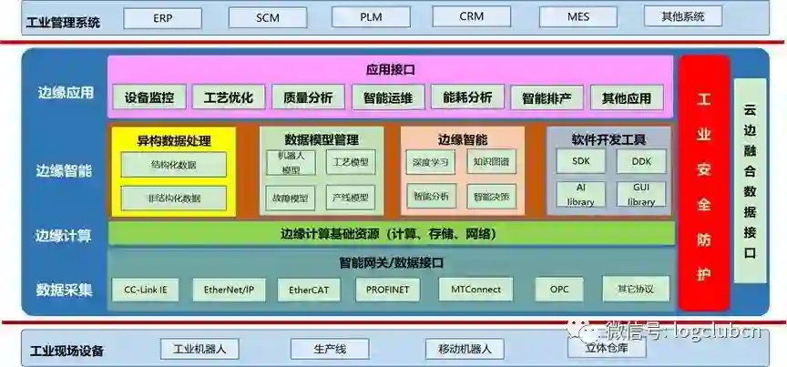 利用网络计算资源,将知识镜像建模和知识挖掘,在网络层中形成实体的镜像对称模型和大数据环境,通过对实体运行历史数据中的关联性和逻辑性进行挖掘,产生能够支持决策的制造知识,重点是将对数据的洞察变为支持决策的知识,形成知识库。边缘计算设备作为边缘设备的输出端,需要较高的实时性与扩展性。面对复杂的 IT 与 OT 设备混连的环境,我们需要有按照优先级处理事件的方案或者协议,比如TSN。而作为云端的输入端则需要较高的稳定性。我们需要对边缘计算设备做冗余以避免整个生产线失控的场景,比如分布式架构。而其自身的边缘智能则需要较强的浮点运算能力以进行智能分析与决策,比如使用专用的加速芯片。
