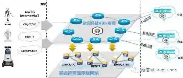 (2) 云端大脑与机器人专网一体化部署,即云端大脑部署在机器人专网 POP 点内,或者是通过专有线路与机器人专网互通。机器人只有在接入到专网 POP 点并通过认证后,才能去访问特定的云端大脑服务。对于互联网用户,云端大脑完全不可见,这大大降低了云端大脑被网络攻击的风险,提升了系统安全性。