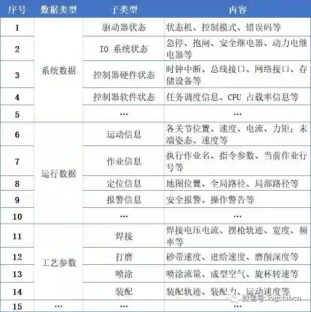 针对不同类机器人或智能设备的数据,搭建统一的数据信息集成平台,形成设备“纵向”(设备端——管理层)与“横向”(设备产业链各环节之间)的二维信息联通平台,筛选出真正有用的数据,重点是将“原始数据”变为“有用数据”。下表是一个产线作业过程中产生出的实时数据的例子。