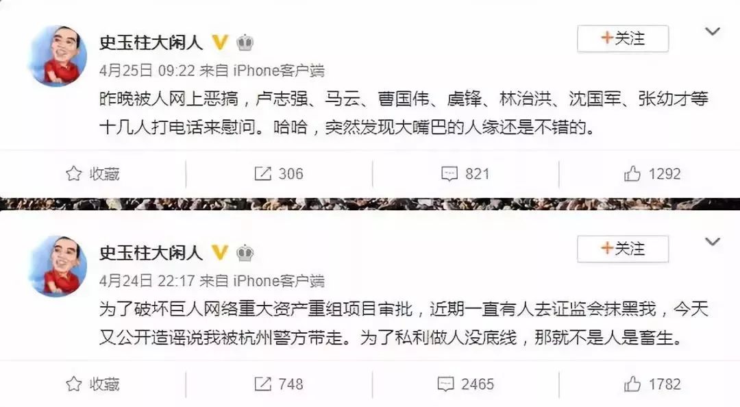 2018年,巨人网络撤销了交易方案,史玉柱在当天公开矛盾,还说:公司已报案,期待“公安机关”的调查结果。我们坚定用法律捍卫公司与投资人的合法权益。