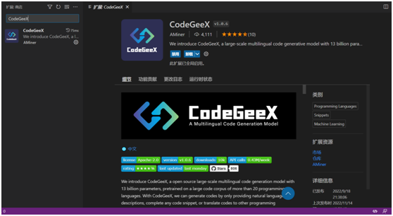 2. GodeGeeX:通过输入文字描述让 IDE 自动提示并生成代码。