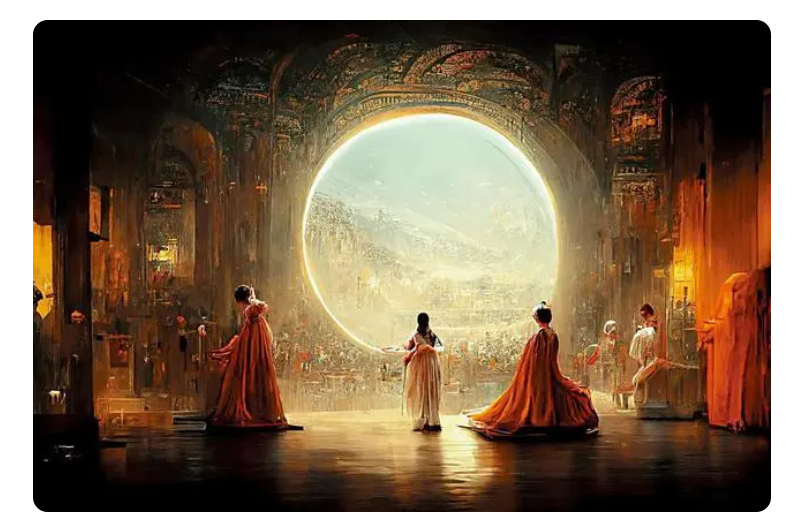 在美国科罗拉多州艺术博览会上基于 Midjourney 获奖的 AI 画作《太空歌剧院》