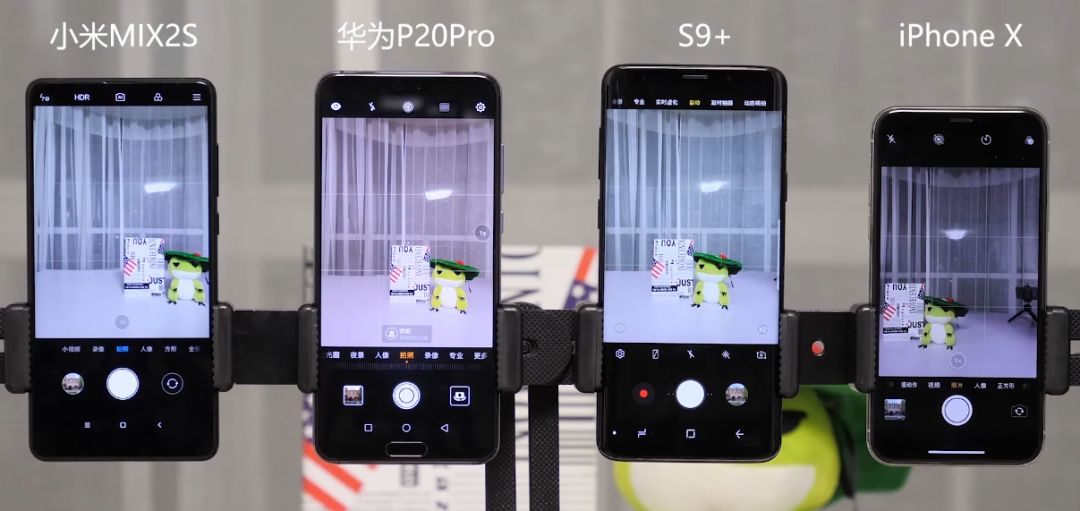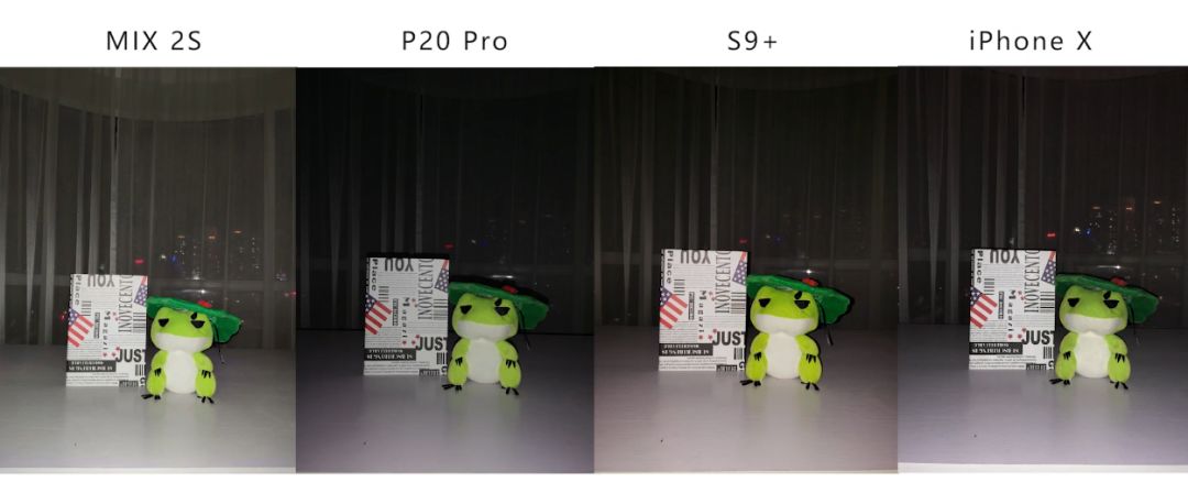 MIX 2S非常了解我们,照的又亮又远。Galaxy S9+和iPhone X次之,光线基本没(mo)过玩偶,P20 Pro勉强可以够到玩偶的前面。