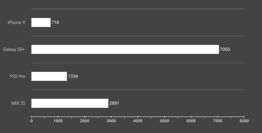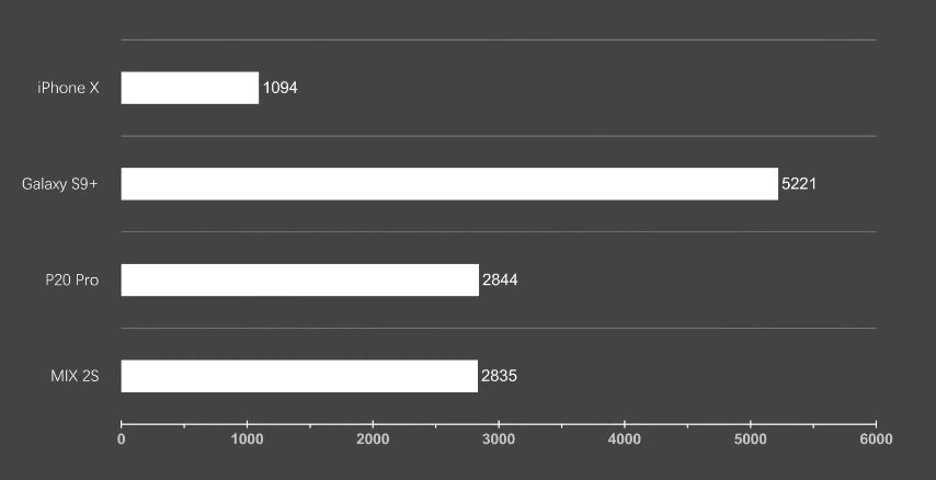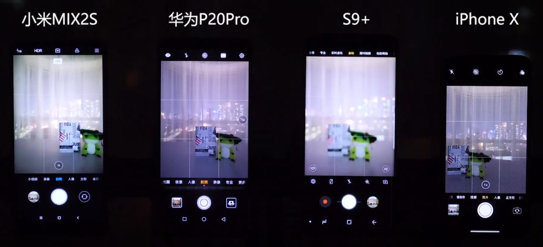 在弱光下的取景,Galaxy S9+和MIX2S取景的帧率都有点低,拖影更严重,P20 Pro和iPhone X的取景要更加流畅。