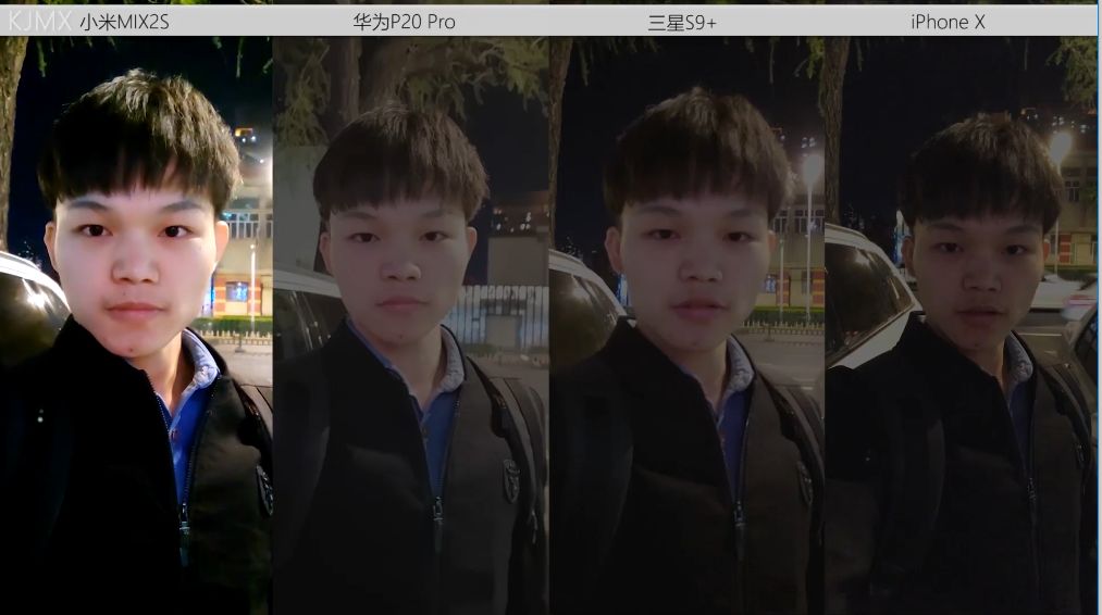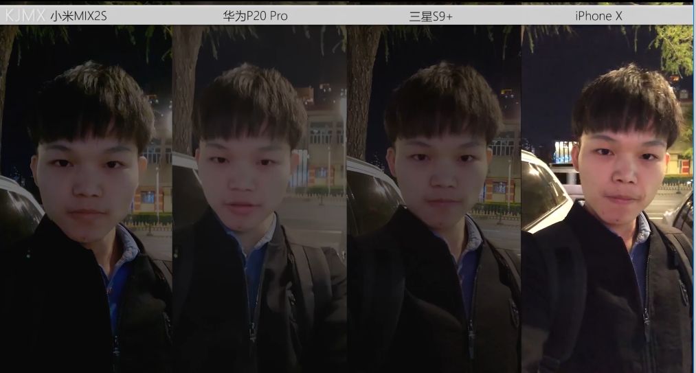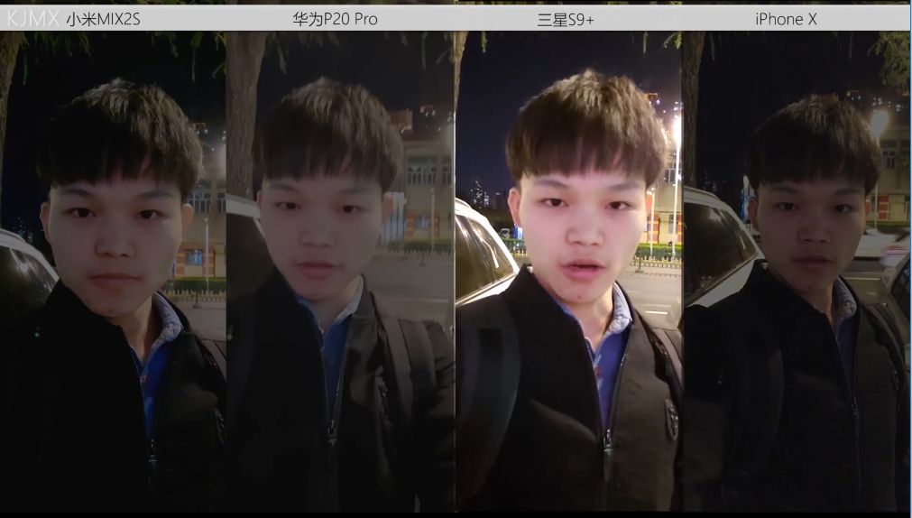 晚上前置相机录像方面,MIX 2S声音最大,和上篇录音环节的表现接近,Galaxy S9+的效果最清晰,P20 Pro附加有美颜的功能。