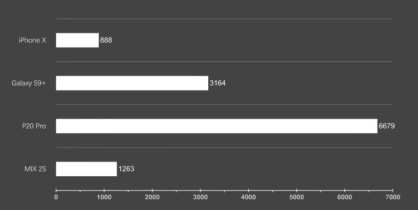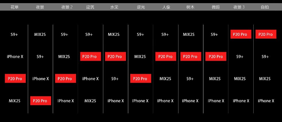 测光和对焦,光线充足的时候,4台机器没有区别,都很迅速。光线不足的时候,可以看到4台机器的取景都高于人眼观测的亮度,P20 Pro出色的对焦表现又快又准,多组测试的结果可以重复验证,Galaxy S9+、MIX 2S随后,偶尔有拉风箱的情况,iPhone X多次无法对焦。