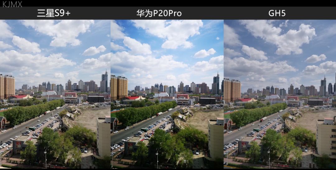 我们把P20Pro开启4000万像素,和1200万像素的S9+以及2000像素的M4/3相机GH5对比,如果在光线非常理想的环境下,华为的细节确实更多,楼宇上的字只有P20 Pro最清晰锐利。以后大家在教室最后一排拍摄黑板就不用担心啦。
