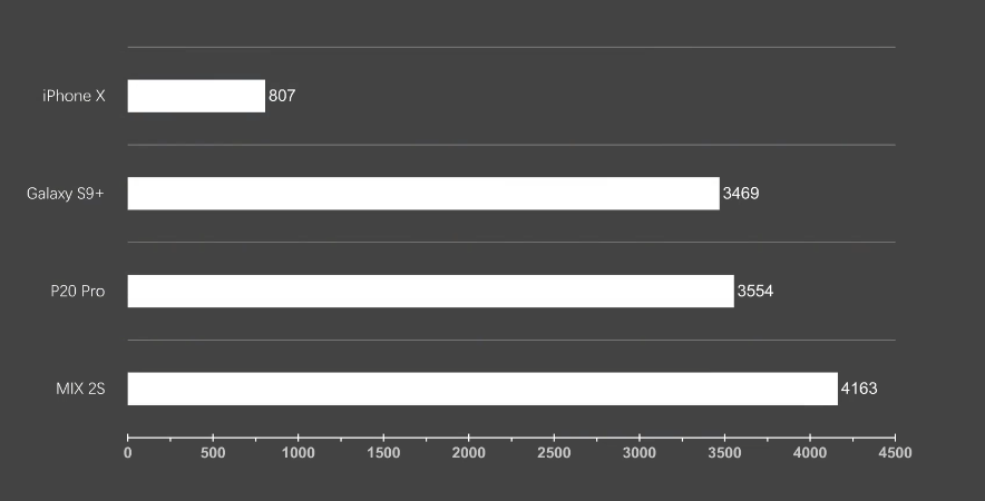 MIX 2S也是双1200万像素,主摄1.4μm像素尺寸,ƒ/1.8光圈,支持4轴OIS防抖。副摄来自三星,光圈也和iPhone X相同,都是ƒ/2.4。支持Dual Pixel、多帧降噪和无损变焦。