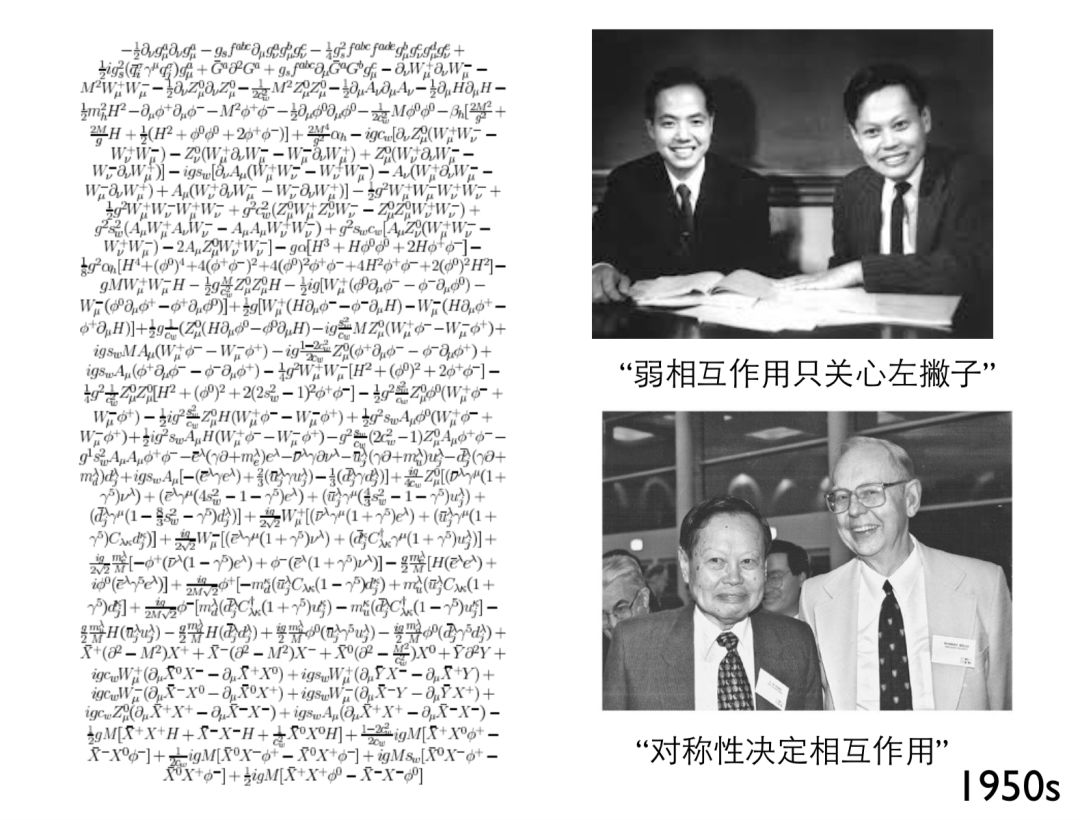 当代粒子物理学利用标准模型中的基本粒子及电磁相互作用,强相互作用和弱相互作用成功描述了大多数微观世界的现象规律。在标准模型建立过程中,华裔物理学家李政道先生和杨振宁先生对弱相互作用宇称不守恒的发现作出了杰出的贡献。
