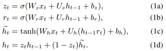 第一,我们提出从网络设计中移除重置门(reset gate)。与 [31] 类似,我们发现移除重置门并不会影响系统的表现,因为我们观察到在更新门(update gate)和重置门发挥的作用上存在一定的冗余。