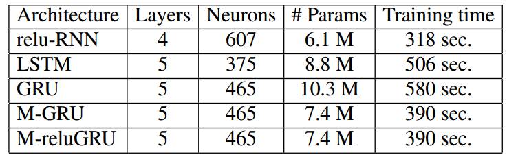 表 2:在 TIMIT 开发集上优化过的 RNN 架构的每 epoch 训练时间比较