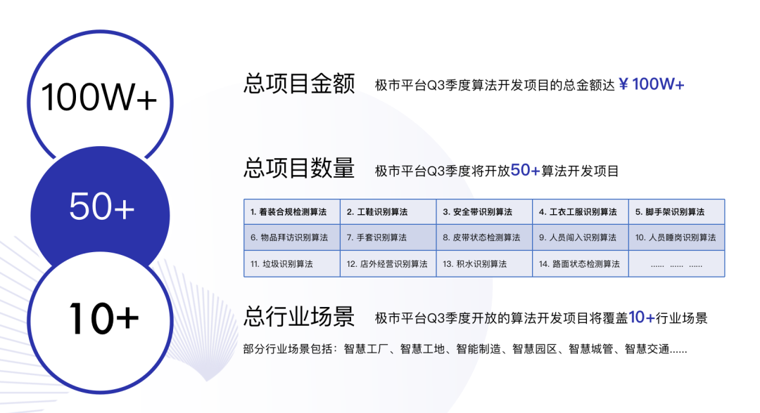 下列项目均由极市平台提供数据及算力资源,仅需开发团队和供应商参与并完成在线算法开发与封装。