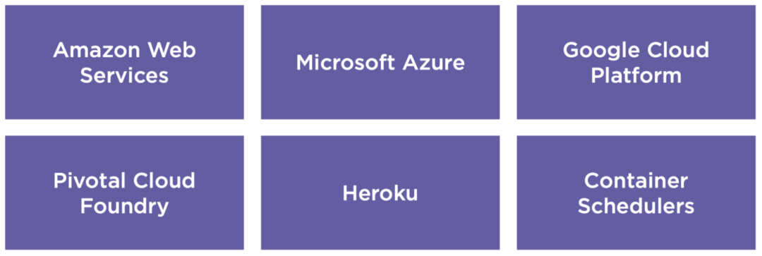 云平台主要是为了自动化、观察软件的运行时,目前业内常用的云平台包括 Amazon Web Services、Microsoft Azure、Google Cloud Platform、Pivotal Cloud Foundry、Heroku 和 Container Schedulers。