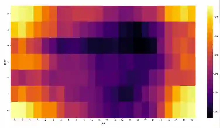 热图的纵坐标DOW表示一周7天,横坐标则是一天24小时。很明显,周末整天的用电情况和工作日深夜的用电情况十分类似。由此,我创建了一个特征——weekend proximity,它不仅提高了模型得分,还帮我最终赢得了比赛。