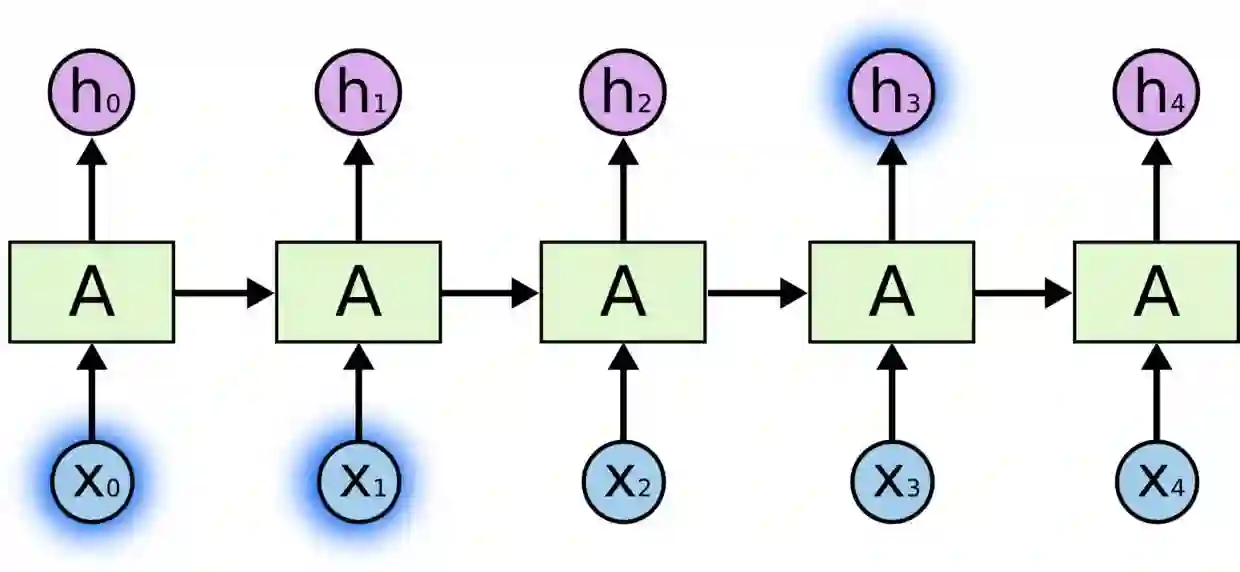 在上面的示例中,神经网络模块A正在读取一个输入X,并输出一个h,循环可以使得信息可以从网络的当前状态传递到下一个状态。