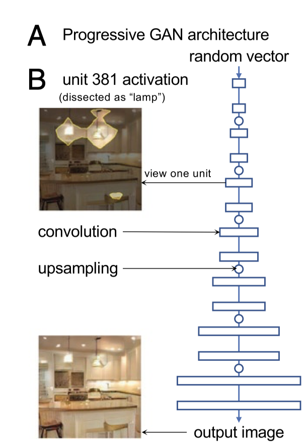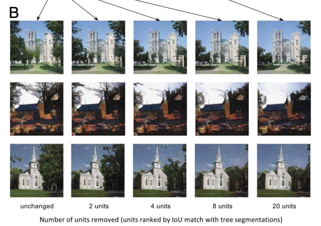 想必大部分深度学习工作者对于应用前沿深度框架已经驾轻就熟,然而,有多少人有想过,在越来越复杂的网络框架和越来越多的神经元数量中,每个神经元本身所起到的作用?这不,MIT朱俊彦团队以及港中文周博磊的力作——《Understanding the role of individual units in a deep neural network》就深入讨论了这个问题,并且已经成功被PNAS(Proceedings of the National Academy of Sciences of the United States of America,美国科学院报)接收。在这篇文章中,作者不仅详尽展现了团队成员这些年在此领域所做的探索和努力的成果,还启发性地提出了此项研究的两个潜在应用,接下来,我们一起来深入详细了解一下此项有趣的伟大工程吧:深度网络中独立隐藏单元可以教会我们神经网络是如何解决复杂问题吗?在最前沿的深度神经网络研究中, 研究者们已经观察到,许多独立的神经单元可以对应一些人类可以理解的具体概念,而这些概念是训练之初人们并没有主动交给网络去学习的,比如:物体(对象),区域(部分),性别,语境,结构,事态,感情等等。而找到这些具有实际意义的抽象概念,是深度学习的主要目的之一,然而,至今,每个具有明确涵义的单元的出现,以及在网络中扮演的角色并不能被非常好的理解。因此,本篇文章就开始了灵魂发问:“我们可以量化单个概念单元的出现吗?哪种具体概念可以被对应到呢?它们又服务于哪个函数呢?”当一个神经网络包括一个激活树的生成单元的时候,我们希望去知道这到底是虚假的关联,抑或是因为某些逻辑上的原因,使得网络在高层次上对树这一对象进行建模的过程得以显露。为了研究以上问题,朱俊彦&周博磊团队引入了网络解剖模型,此模型主要对深度卷积神经网络(CNN)的语义概念进行了系统的映射。在此类网络中,基本的计算单元是一个学习过的卷积过滤器,而这是解决一系列计算机视觉领域中广泛的判别和生成任务的最新结构。通过将每个神经元的活动和对于人类的可解释模式匹配任务(比如物体类别检测)进行对比,神经网络解剖可以定义,可视化和量化独立神经元的具体角色。和前人研究不同的是,本文直接对网络内部的计算进行了解释,而不是训练一个辅助解释模型。在本文的处理中,研究人员主要将在两种不同任务上训练的模型进行了解剖,这两个任务分别是图像分类和图像生成。研究人员发现,一个训练好的网络包含和高层次视觉概念相对应的神经单元,而这些并没有在训练数据中标记出来。举个例子,当模型被训练用来分类或者生成自然风光图片的时候,两种网络都出现了和“树”的概念相对应的独立神经元,即使在训练过程中,研究人员从来没有教给神经网络“树”的概念。而这一工作,可以促使研究人员利用激活或者关闭神经元的方法,进一步测试网络行为的推理结构。下面是对两种网络的探索的简单概括: