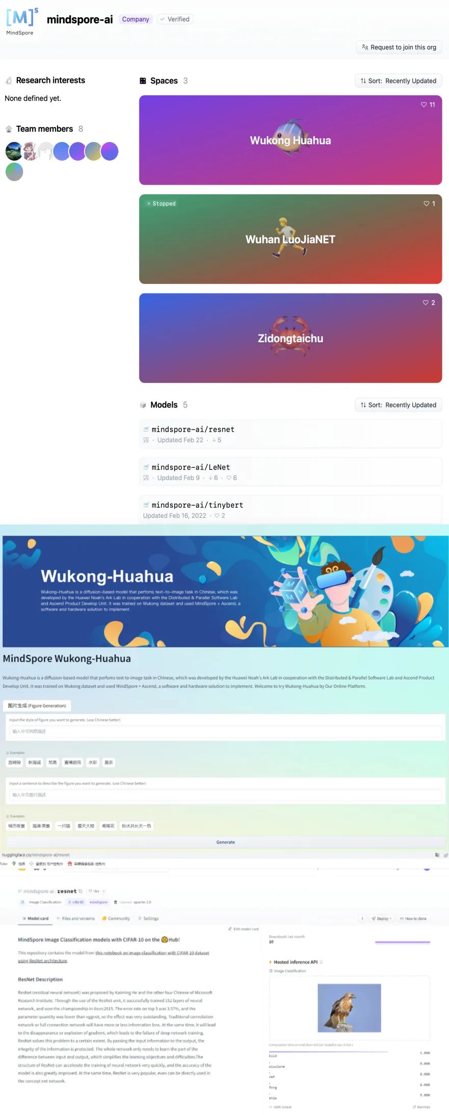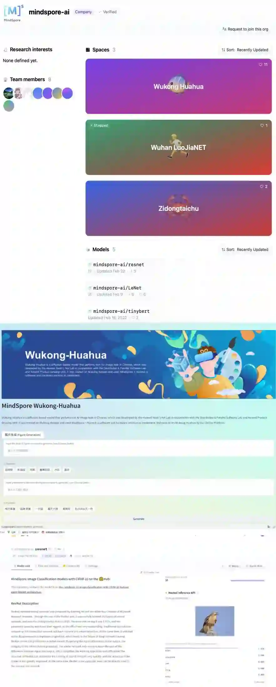除了本身技术模块的升级,平台也在积极增进与外部开源社区的联结,拓展海内外大模型生态。通过在Hugging Face社区上线首个基于国产算力的MindSpore专区,让开发者在Hugging Face上可体验所有昇思大模型推理服务,同时,成功对接Hugging Face Inference API,支持在Hugging Face 体验MindSpore模型加载与运行,开发者可直接在线上传MindSpore模型体验推理服务。未来,平台还将提供算力弹性调度模块,让更多计算中心能够无缝接入,为开发者开放更多的算力,使能大模型的开发与训练。