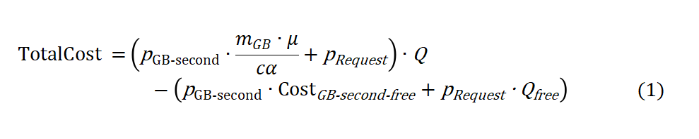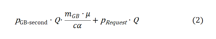 为方便计算 TotalCost,用表示函数的资源规格,单位为 GB, 例如,对于 128MB 规格的函数,其