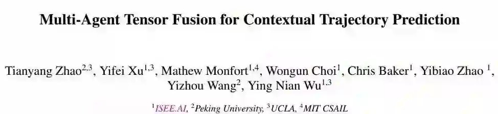 本文是计算机视觉领域国际顶级会议 CVPR 2019 入选论文《Multi Agent Tensor Fusion for Contextual Trajectory Prediction》的解读。该论文由 MIT 支持的自动驾驶初创公司 ISEE Inc,北京大学王亦洲老师课题组,UCLA,以及 MIT CSAIL 合作共同完成。该论文主要提出了一种基于深度学习的车辆和行人轨迹预测方法,提出了一个可以保持空间结构信息的多智能体张量融合网络,在机动车驾驶和行人轨迹数据集中对模型的性能进行了验证。