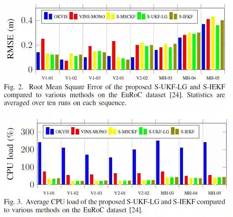 我们与最先进的解决方案在EuRoC数据集和MAV户外数据集在准确性、鲁棒性和计算复杂性方面进行了比较。
