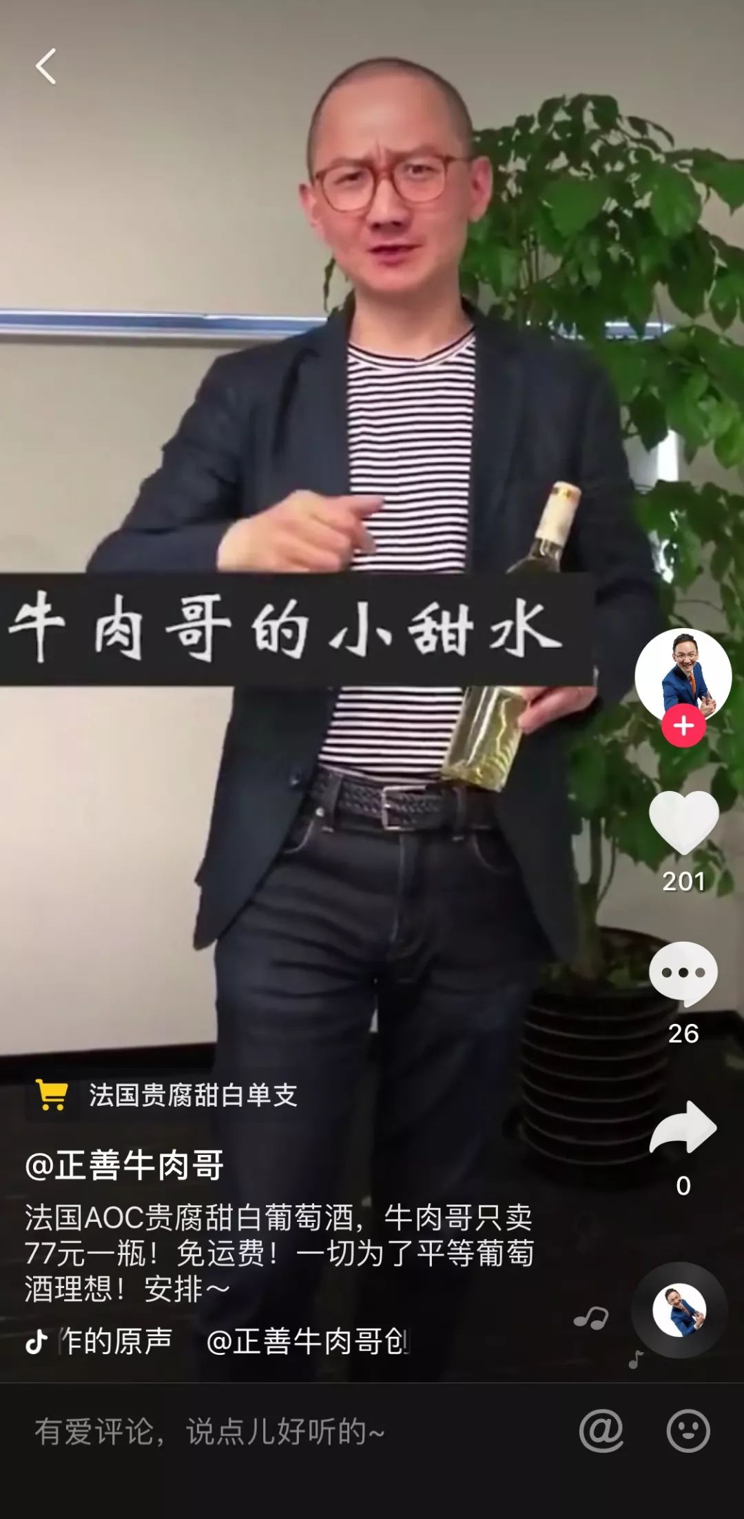 牛肉哥陈錡正是商品质量漩涡中的代表人物。除了牛肉之外,牛肉哥也在抖音上卖红酒,其中一款99元6瓶的进口葡萄酒在葡萄酒领域引起质疑。