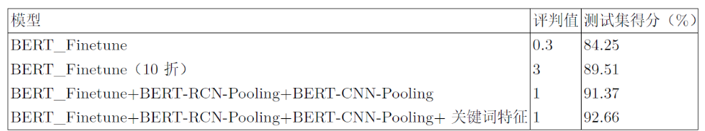 除了此模型外,该方案还使用了BERT-Finetune、BERT-RCN-Pooling模型。