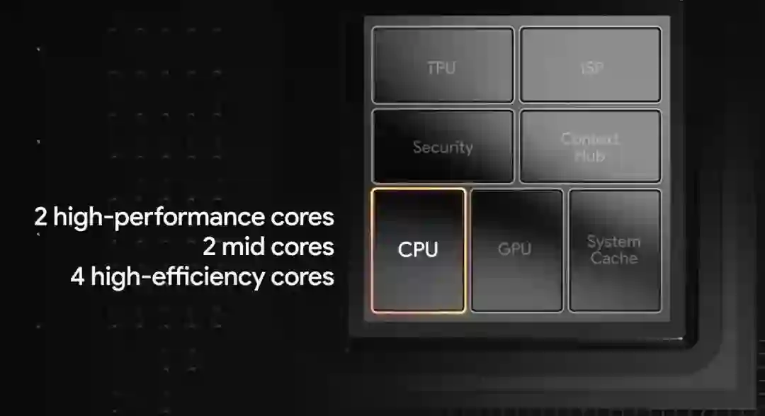Pixel 6 Pro 搭载 Tensor SoC,谷歌内部代号 GS101,采用三星 5nm 工艺制程,是谷歌自研芯片的首秀,让谷歌成为苹果、华为、三星之后,又一家拥有自研 SoC 芯片的智能手机厂商。