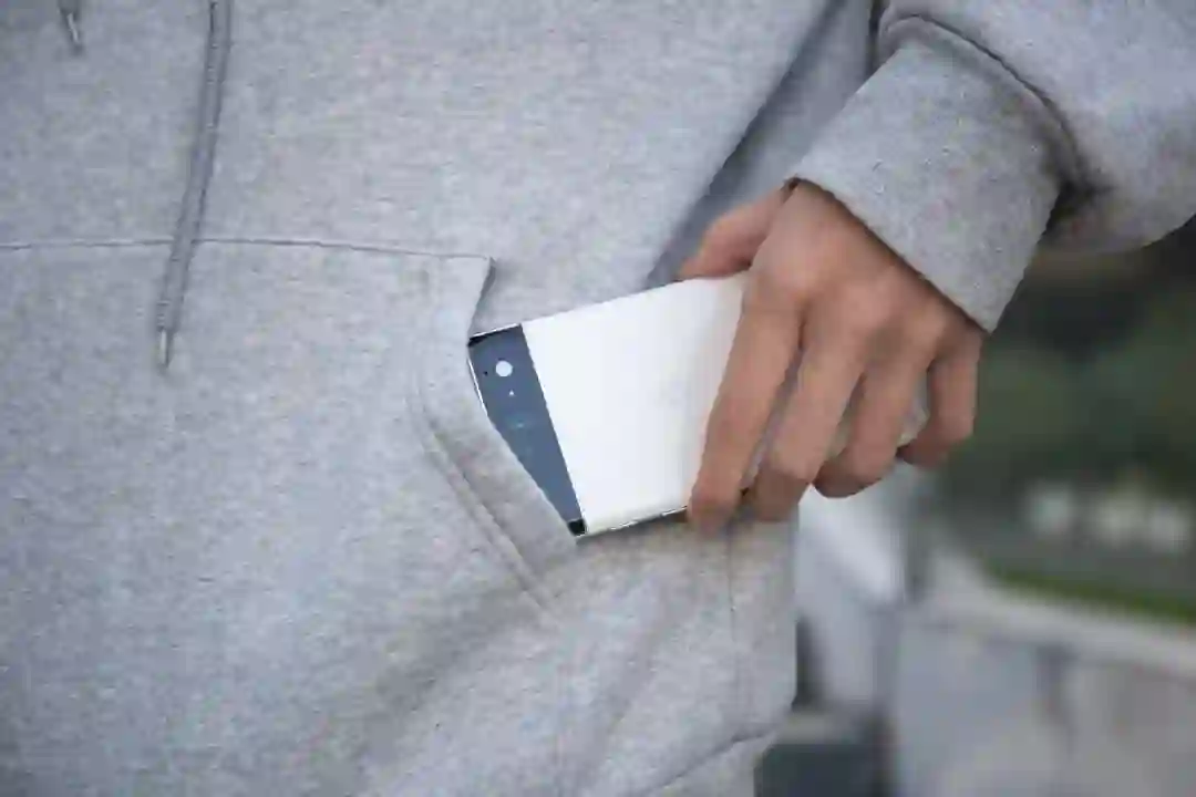 独具特色的还有它的撞色设计。我们手中的云雾白配色看起来不太明显,实际上顶部这一块是偏灰色的,主体则是纯白。Pixel 6 系列放弃了 Pixel 4、5 两代的一体式设计,与前三代 Pixel 的撞色设计也大不相同,是系列史上一次彻底的设计更新。