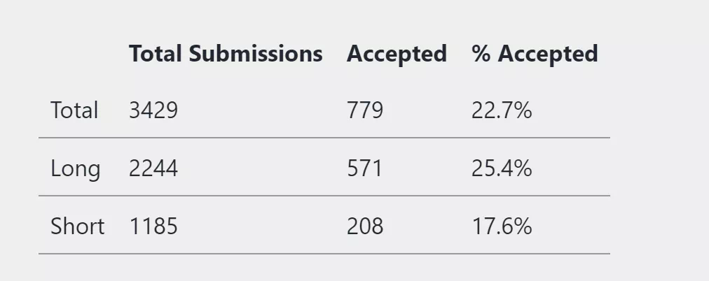 NLP 的机器学习、对话和交互技术、机器翻译、信息提取和 NLP 应用是前五个最受欢迎的研究方向,每个方向都有超过 200 个提交。