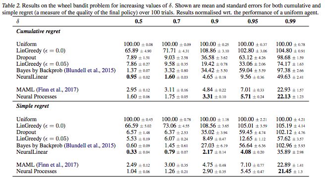 表2. 增加δ值后wheel bandit问题的结果