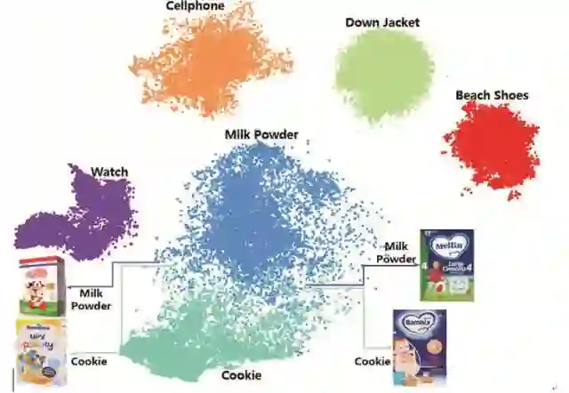 由图3可见,虽然整个Telepath网络并非用商品类目信息来训练,但仍然能够非常好地区分不同的商品。这符合我们的预期,也符合常理,因为卷积网络对相似的输入必然产生相似的输出。