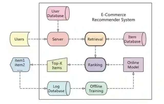 业界通用的推荐系统的核心包括检索(Retrieval)和排序(Ranking)两个模块,京东也不例外。在某个用户访问京东网站或APP时,检索模块负责为用户从数以亿计的商品中选择出数百个候选商品的集合,排序模块负责给这些候选商品打分,决定最终呈现给用户哪几个商品。本文主要关注排序阶段,但所述的技术对检索阶段来说是通用。