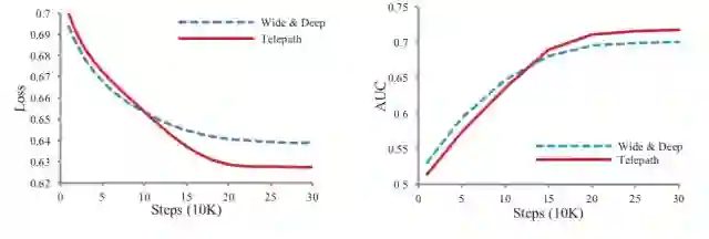 从图中可见,Telepath的Loss和AUC比起Wide & Deep网络都有一定改善。