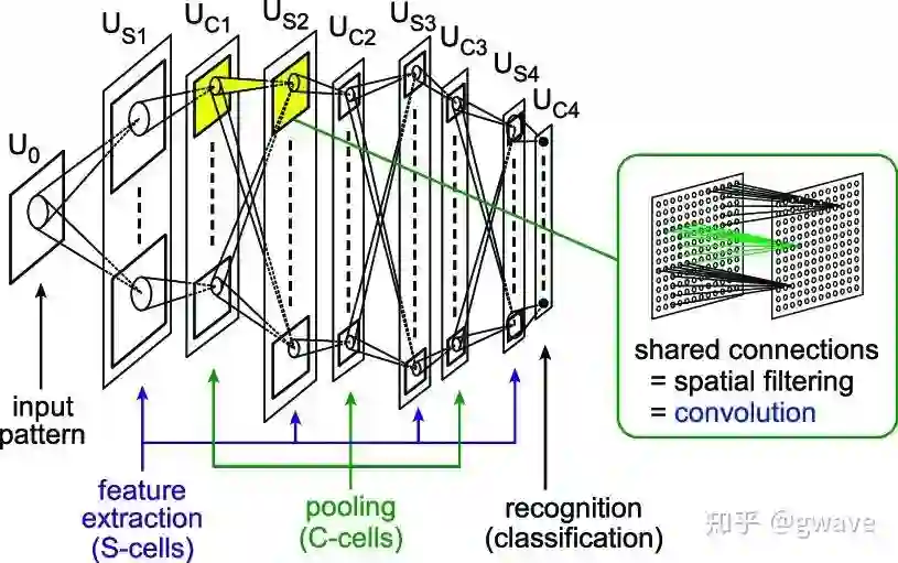 1979年,日本科学家Kunihiko Fukushima提出Neocognitron模型,可以说是CV界卷积思想的鼻祖了吧。1990年代,Yan Lecun提出LeNet,比较好的识别了手写数字,他的MNIST数据集已经成为今天CV学习者的“Hello World”。2014年ImageNet冠军27层神经网络GoogLeNet中的L大写,是为了向LeNet致敬。