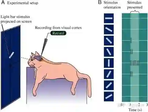 从更长远的历史尺度来看,CNN的工作原理与1958年Johns Hopkins大学两位教授Hubbell和Wiesel对于猫的视觉研究非常相似。他们在猫的脑壳上开了个3mm的小孔,放入电极,测量给猫看不同的图像刺激时猫脑电波动,他们发现特定的大脑视皮层细胞只会被部分对应形状的视觉特征图像所激发(CNN中的卷积核的工作原理与之非常类似),他们由此发现了大脑视觉过程的机制,获1981年诺贝尔医学奖。