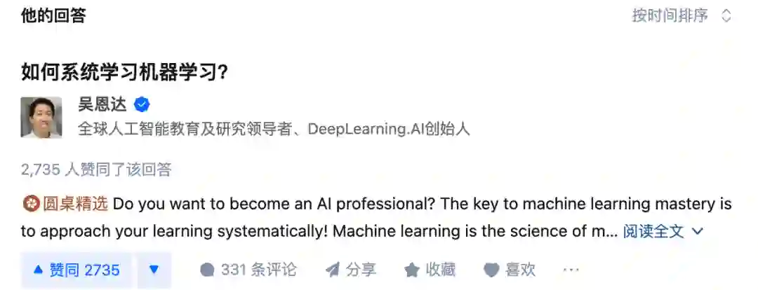 开设账号第一天,吴恩达就收获了 6 千多的关注。第一个回答「如何系统学习机器学习」也已经获得了 2 千多赞同。