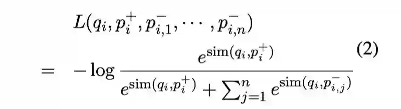 在检索之前先用一个 dense encoder 给文档库中的所有文档都进行 encoding。在检索的时候用另一个 dense encoder 给 question 进行 encoding,之后根据下图公式算两个 representation 的 similarity,取 top-k 作为结果。
