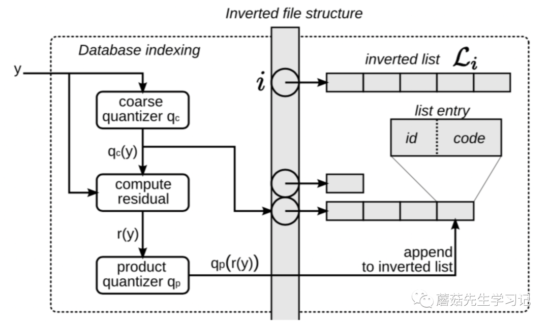 建立从粗粒度聚类中心id 到 doc的映射关系,其中doc的信息包括:向量id,向量的残差量化code。每个doc通过粗糙聚类中心id和残差量化code就能知道原始向量如何映射到量化向量。
