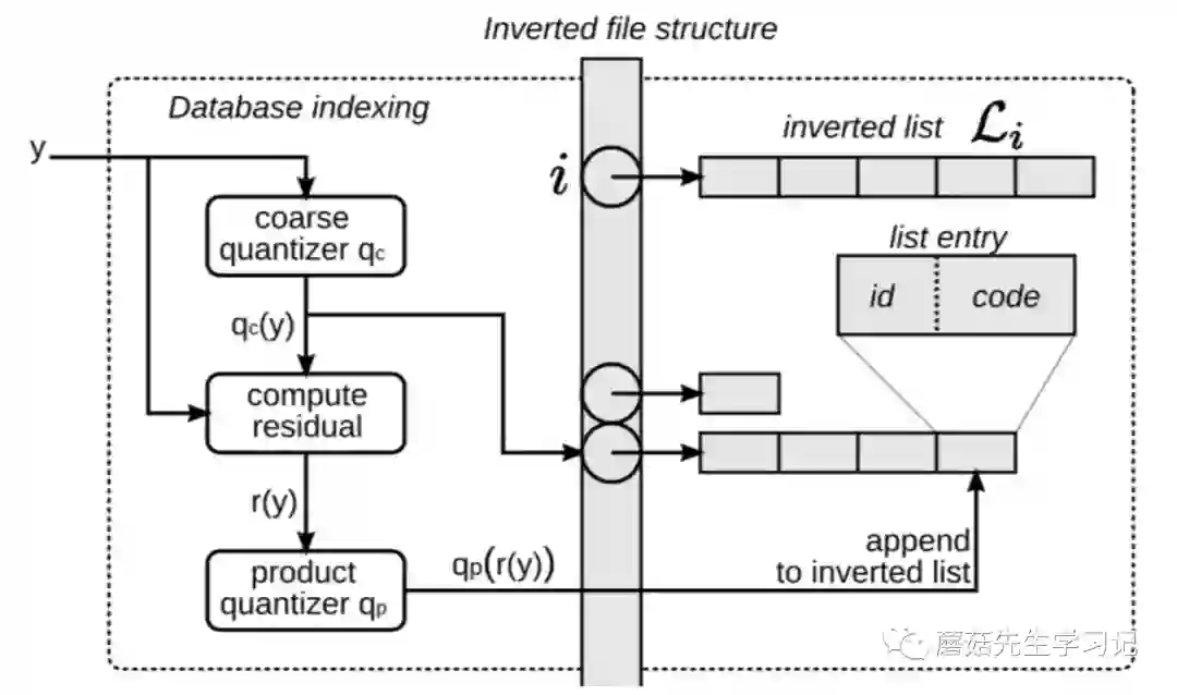 过程:具体而言,向量库先构造一个小规模codebook ,量化器为 。这个就是所谓的粗糙量化,或者称为粗糙聚类。接着,每个向量y都会有一个残差 。具体而言:记残差量化步骤的量化器为 ,则y可以通过 来表示。