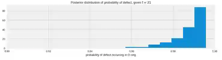 挑战者号灾难发生的当天,其温度为 31 华氏度,这一事实证明了,O 形圈失效的后验分布将使我们高度确信挑战者号会出现损坏的问题。