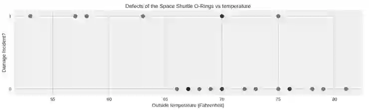 在这篇文章接下来的部分,我们将一起探讨一个 非常有名的现实世界的问题,这个问题在 Bayesian Hackers 一书中的第二章节(查看地址:https://github.com/CamDavidsonPilon/Probabilistic-Programming-and-Bayesian-Methods-for-Hackers/blob/master/Chapter2_MorePyMC/Ch2_MorePyMC_TFP.ipynb)有更详细的描述:1986 年航天飞机挑战者的灾难。