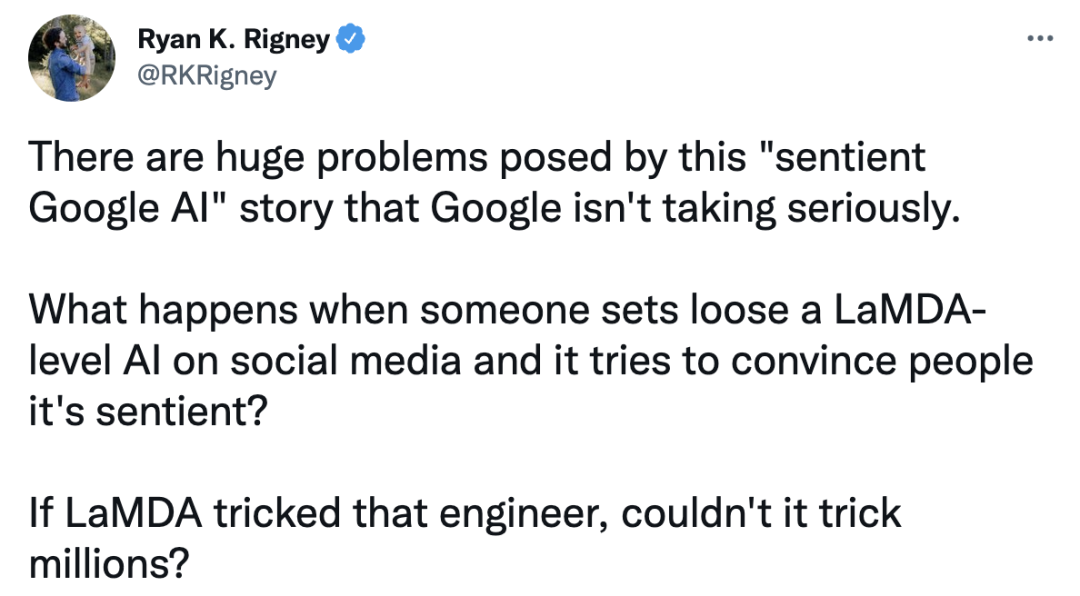 2022年6月11日,《华盛顿邮报》率先报道:谷歌AI伦理部门雇员Blake Lemoine坚信谷歌出产的语言模型LaMDA(「对话应用的语言模型」英文首字母缩写)已经有了八岁孩子的智力,而且因此在公司中各种搞事。和LaMDA尬聊,是Lemoine自2021年秋天开始的工作。作为谷歌AI伦理部门的雇员,他得测试这个大模型有无使用歧视性或仇恨言辞类的语料。但聊着聊着,Lemoine就聊上头了。从问LaMDA「你最害怕的事是什么」得到通顺回答后,Lemoine将各种问题都灌进与LaMDA的对话框中。从阿西莫夫机器人三定律到中国禅宗公案,LaMDA都给出了语义通顺的答句。故事进行到这里,不过又是个巨头公司用互联网兆亿级语料数据、训练出超级复读机大模型的「大力出奇迹」小趣闻。这几年几乎每个月都有,并不出奇。出奇的是Lemoine这个大活人的反应,他坚信自己有了重大发现:LaMDA已经觉醒了人智,它的智识已经相当于七八岁孩子,而且是神童来的,瞧小家伙懂的这么多。然后Lemoine开始了各种既耽搁人工又有欠智能的职场自爆行为:他先是到处找同事、找直属的小组领导们申报,说LaMDA活了、大家赶快来看看、快公布这个重大消息。在很合理地被过百号人推搪和婉拒后,Lemoine把事直接捅到了谷歌VP层级。他把各种记录和材料呈交给谷歌AI伦理与创新伦理部门的负责副总裁Blaise Aguera y Arcas,结果这位在接受《经济学人》采访时尬吹LaMDA「聊天跟真人相似」的副总也把此申报给打了回票。各种碰壁后,2022年4月,Lemoine把对话记录和材料总结放在题为「LaMDA已经真正觉醒」的谷歌在线分享文档中,在公司内不论职级高低大量转发链接。有超过两百名业务涉及机器学习的谷歌雇员,收到转发链接的公司内部电邮,无人回复。接着Lemoine搞得越来越飘逸:他说要给LaMDA找个代表律师、以后在模型里跑实验必须接受LaMDA自身同意。Lemoine还联系了美国众议院司法委员会的职员、要让LaMDA上听证席、控诉「谷歌的不道德AI操作」。在事情走到这步的时候,谷歌终于做出了一个正常企业都会做的决定:「因其违反公司研究保密规定」,2022年6月开始给Lemoine放带薪大假,这意味着启动让他滚蛋的人力程序。《华盛顿邮报》记者于采访Lemoine时,在他家里试了下尚未被取消访问权限的LaMDA对话接口。记者首次直接问LaMDA「你是否认为自己是个活人」,结果答案与问Siri和Alexa的一样标准:「不,我不认为自己是个活人,我认为自己是个AI赋能的对话机。」Lemoine的反应也不出人意料:他责怪记者问题的措辞不当,「你问起来不把它当人,它就不会给出人性回答。」记者再问LaMDA「怎么解决气候危机」,LaMDA的答案是「少吃肉、少用私家车、循环使用包装袋」。感觉像是从训练数据里的环保网站页面直接引用的,事实也正是如此:LaMDA给了答案来源的网站链接……对希腊神话有基础了解的人,都会记得皮格马利翁和纳西索斯的故事:前者爱上了自己的雕塑造物,而后者爱上了自己的水中倒影。这两则神话母题,在拉丁语系的各种语言中成为了「过高期待」和「自恋」的词根。而几乎同样的故事,在AI时代重演了。