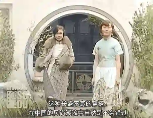 下一套便是「上海滩」风格,外着貂皮大衣,内搭一件旗袍。