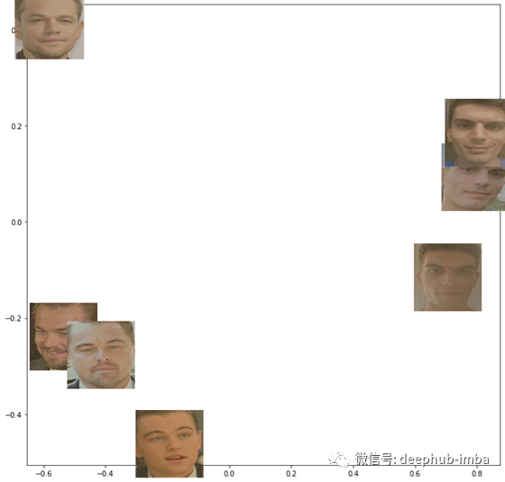我们可以更加深入,在嵌入向量中运行PCA并将图像投影到二维平面中
